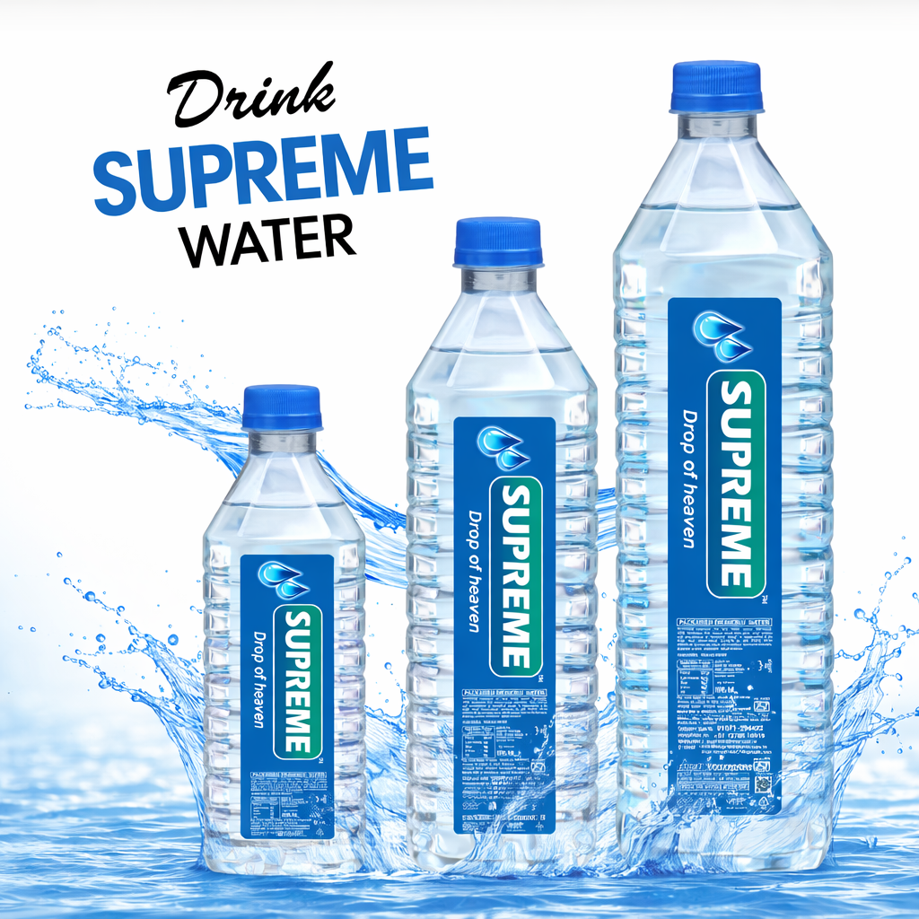 At Supreme Beverages, we believe that true refreshment begins with purity, precision, and passion. Every bottle we create is a result of advanced purification, carefully balanced minerals, and uncompromising quality standards delivering hydration that is as safe as it is satisfying.